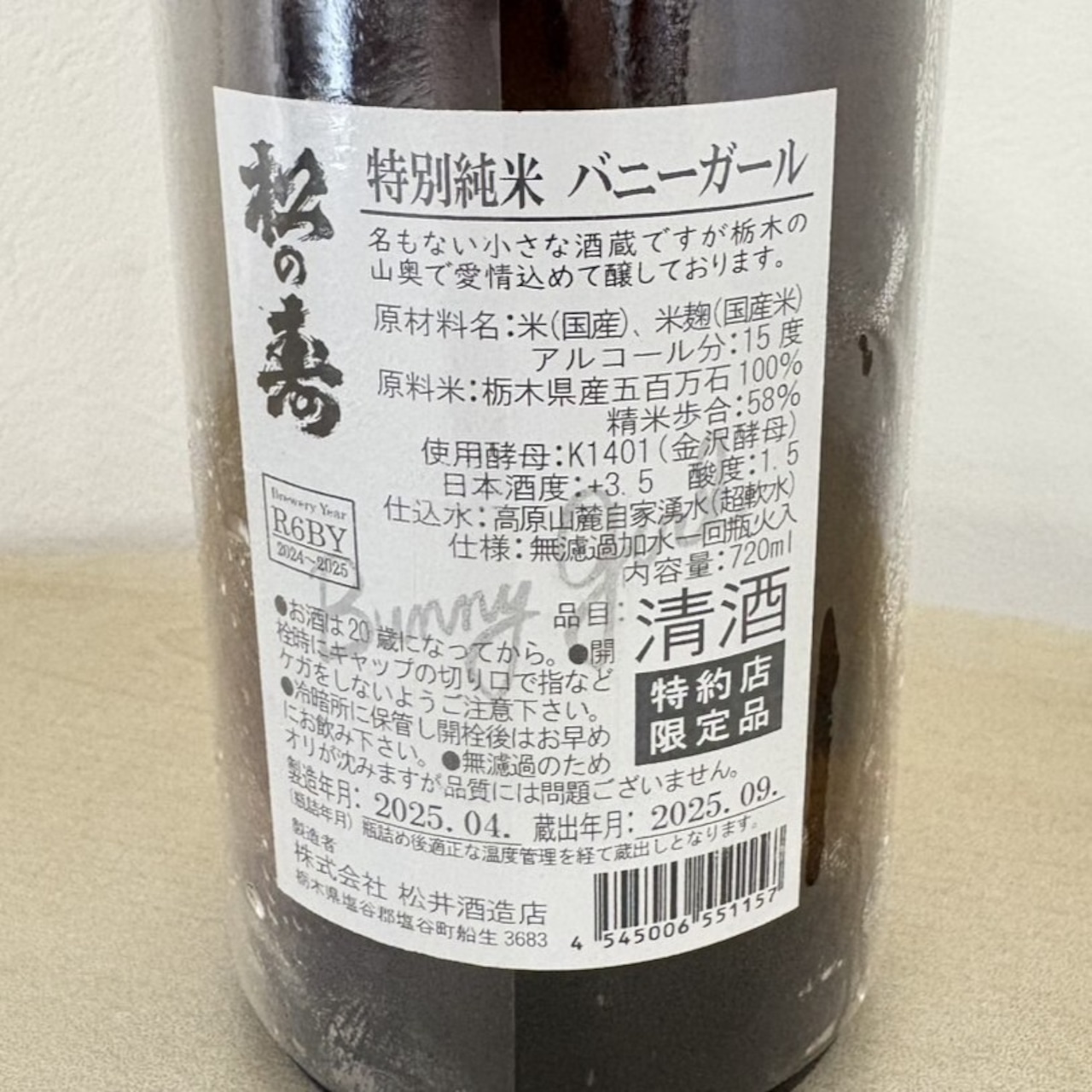 【女将プロデュースの秋の酒】松の寿 (まつのことぶき) 特別純米 バニーガール 720ml