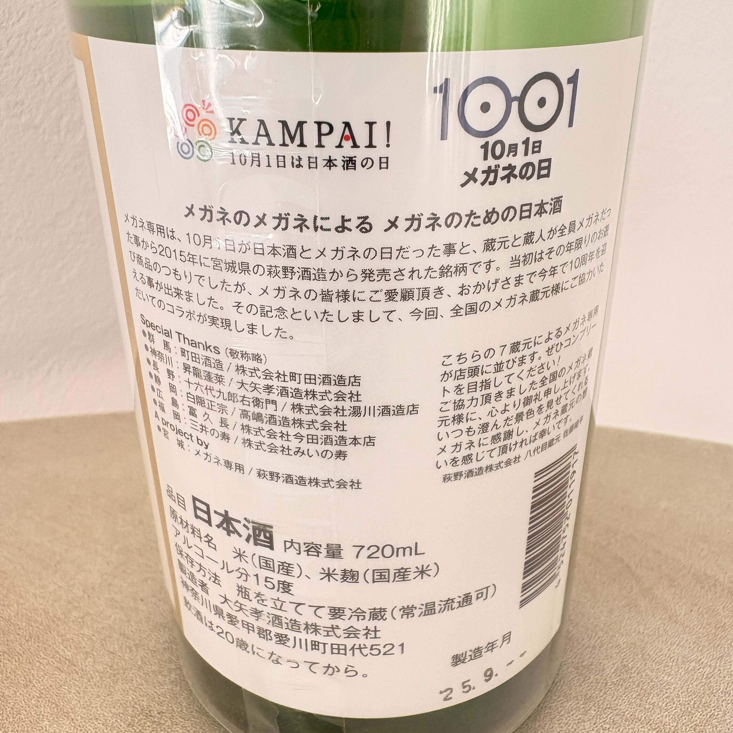 その記念として全国のメガネ蔵元とコラボしたお酒です。